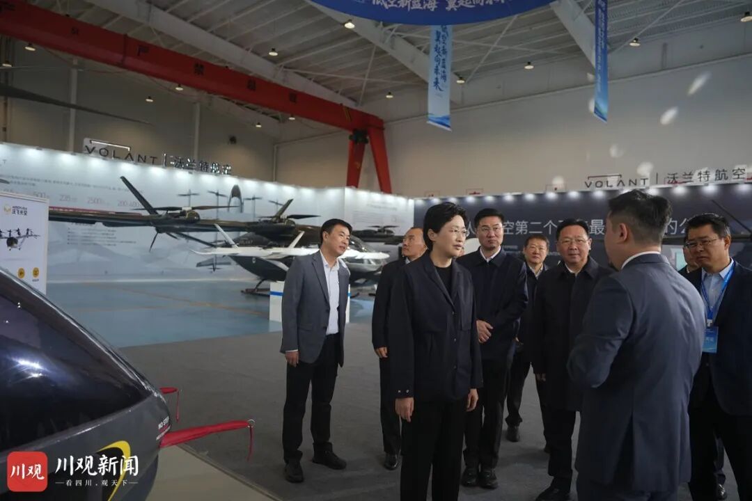 大会开始前,施小琳等来到凤鸣通用机场,参观低空经济产业链龙头企业重点产品展,观看标志性产品应用场景动态演示。施小琳指出,党的二十届四中全会强调,要加快低空经济等战略性新兴产业集群发展。省委、省政府贯彻落实党中央、国务院决策部署,将低空经济作为推动高质量发展、培育新质生产力的重要着力点,争取各方支持,集聚高能级主体,优化发展生态,采取务实有力举措,推动各项工作取得积极进展。省低空经济产业链链长办和各承载地协同地、链主链属企业要进一步强化协同联动,围绕“飞起来”“强起来”“管起来”,规范拓展低空空域,深化运行管理试点,不断释放宜飞新空间;持之以恒推动建圈强链,用好产业图谱,精选关键子链,清单化推进项目、产品、平台等发展,积极开辟政务、行业、消费应用新场景,提升本地配套率,持续完善产业生态;统筹布局低空基建,健全治理管理体系,提升运行服务保障能力,切实守牢安全底线,加快打造西部低空经济发展高地。